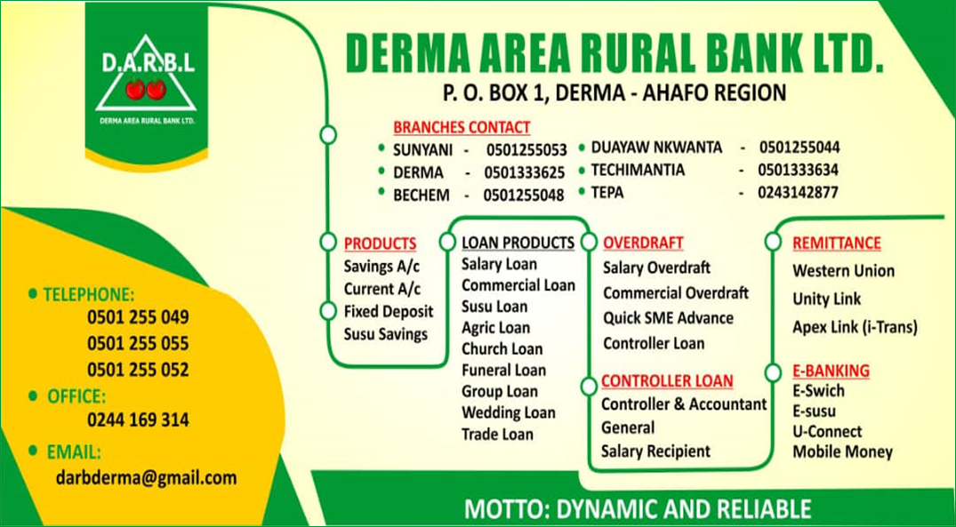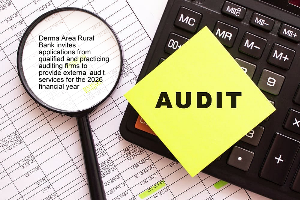 In accordance with the Banks and Specialised Deposit-Taking Institutions Act, 2016 (Act 930) and the guidelines of the Bank of Ghana, Derma Area Rural Bank PLC invites applications from qualified and practicing auditing firms to provide external audit services for the 2026 financial year.