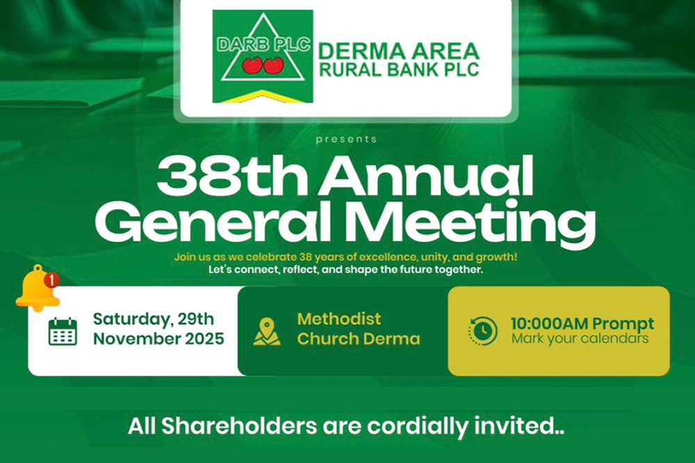 Derma Area Rural Bank PLC (DARB PLC) is proud to announce its 38th Annual General Meeting (AGM), a momentous occasion to celebrate nearly four decades of excellence, unity and growth in rural banking and community development.